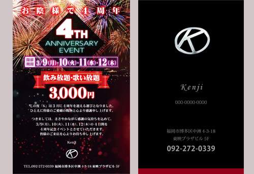 ▼ハガキ・名刺 ▷ハガキを見る ▷名刺を見る 担当:ディレクション/デザイン/制作期間:1日 オープン時にご依頼いただいた開店案内のはがきと名刺デザイン。二周年、三周年のはがきもご依頼いただきました。