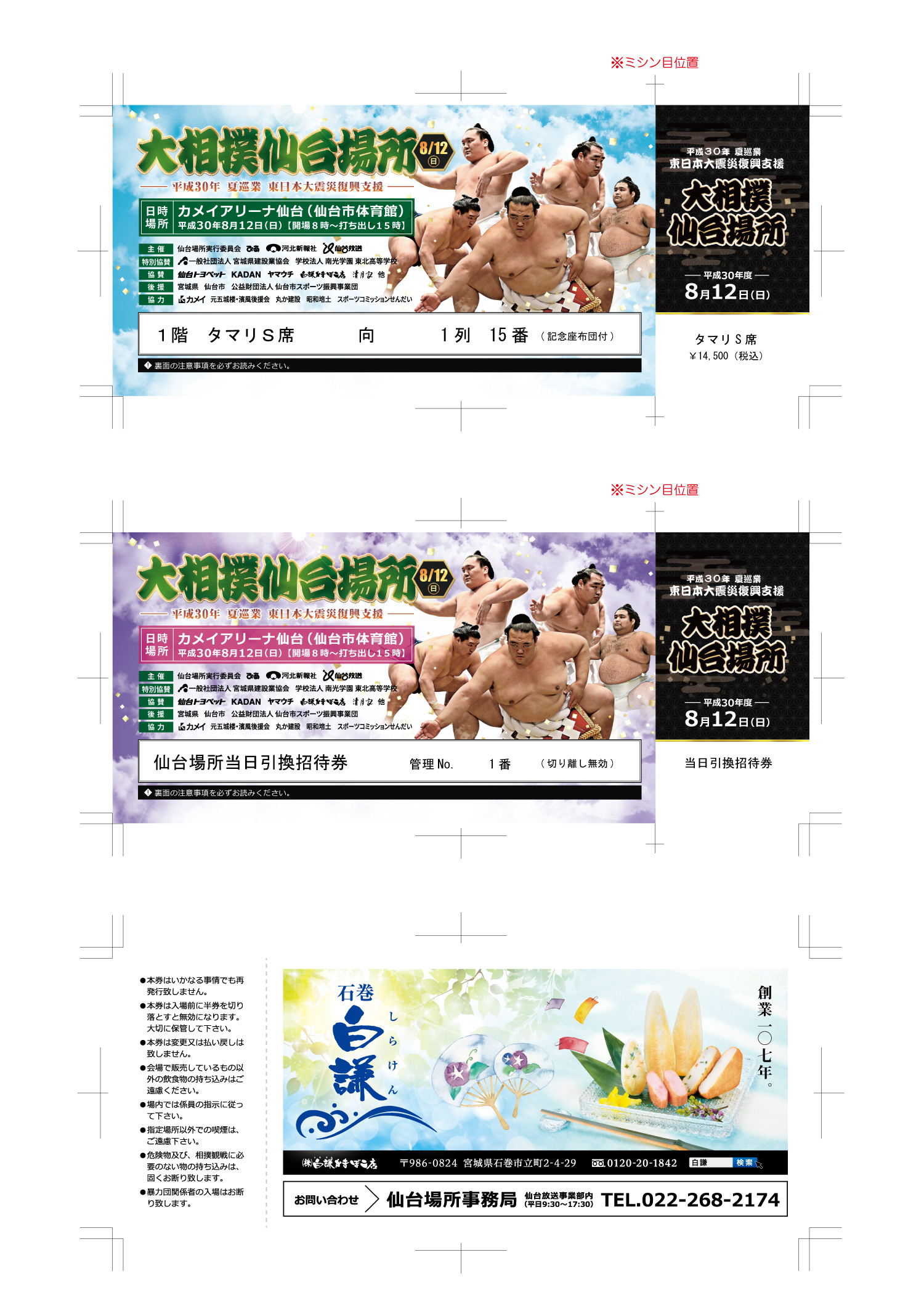 巡業会場にて販売するペンフレット制作が本プロモーションの山場となります。巡業開催日の2.3ヶ月前から協賛社の広告作成が始まり、開催1か月前には表紙含め全てのページを完成させます。