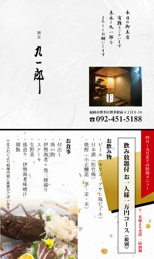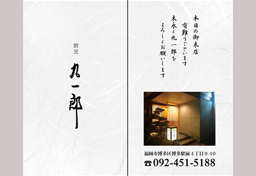 割烹九一郎様の夏限定メニューカード。常連のお客様へ手渡しする名刺大の二つ折りカードのご依頼。